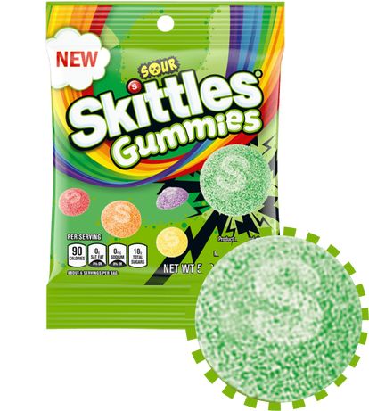 Loaded with tangy twist the SKITTLES Sour Gummy Candy series, this SKITTLE Sour Gummy - Green Apple is your FAVORITE based on your personal taste preference.